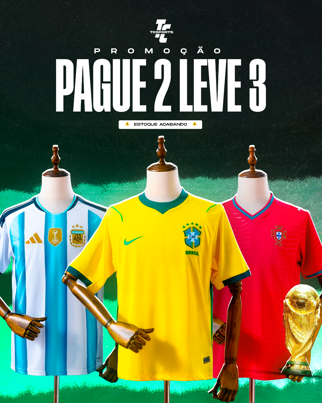 Aceitamos cartão de crédito (todas as bandeiras), Pix e boleto. No Pix, sua camisa já entra em processo de separação na hora. Mais rápido pra chegar até você!